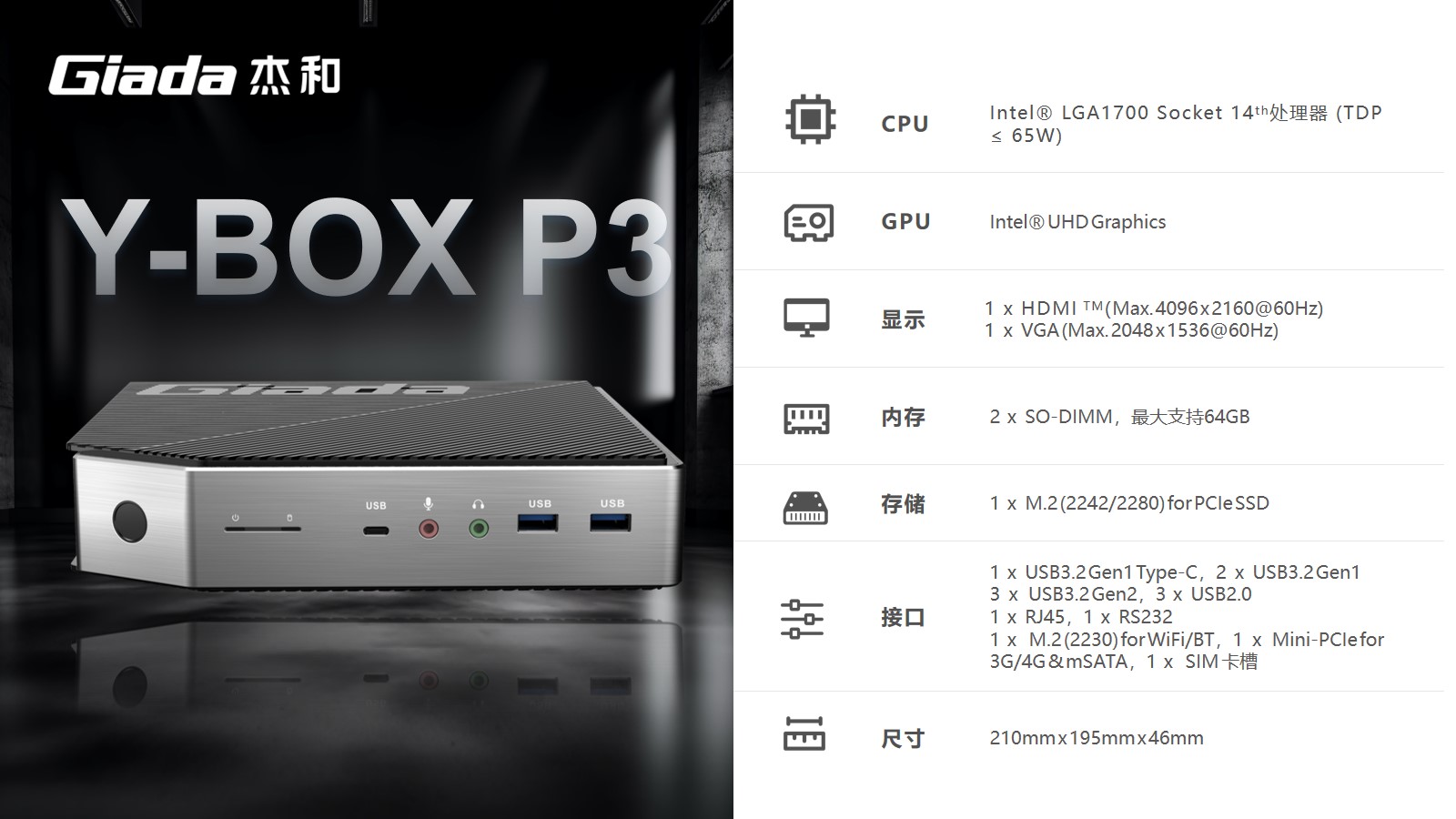 支持指纹解锁,支持type-c接口,支持PD协议的27W快充。星空科技最新云终端Y-BOX P3采用Intel® LGA 1700 Socket CPU插槽设计,支持intel 12~14代酷睿系列处理器,配备i7-14700处理器,20核28线程,最大睿频频率为5.4GHz,处理器基础功耗 65W。采用双通道笔记本内存槽设计,最大支持容量可达64GB,最高支持DDR5-5600MHz频率,比 DDR4 至高标准数据速度 3200MT/S多传输 1.75 倍。