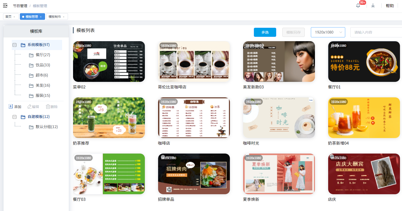 提供海量的模板库,适应不同屏幕尺寸,可直接编辑包括图片、音频、视频、文档、混播、网页等元素,满足各种场景需求。