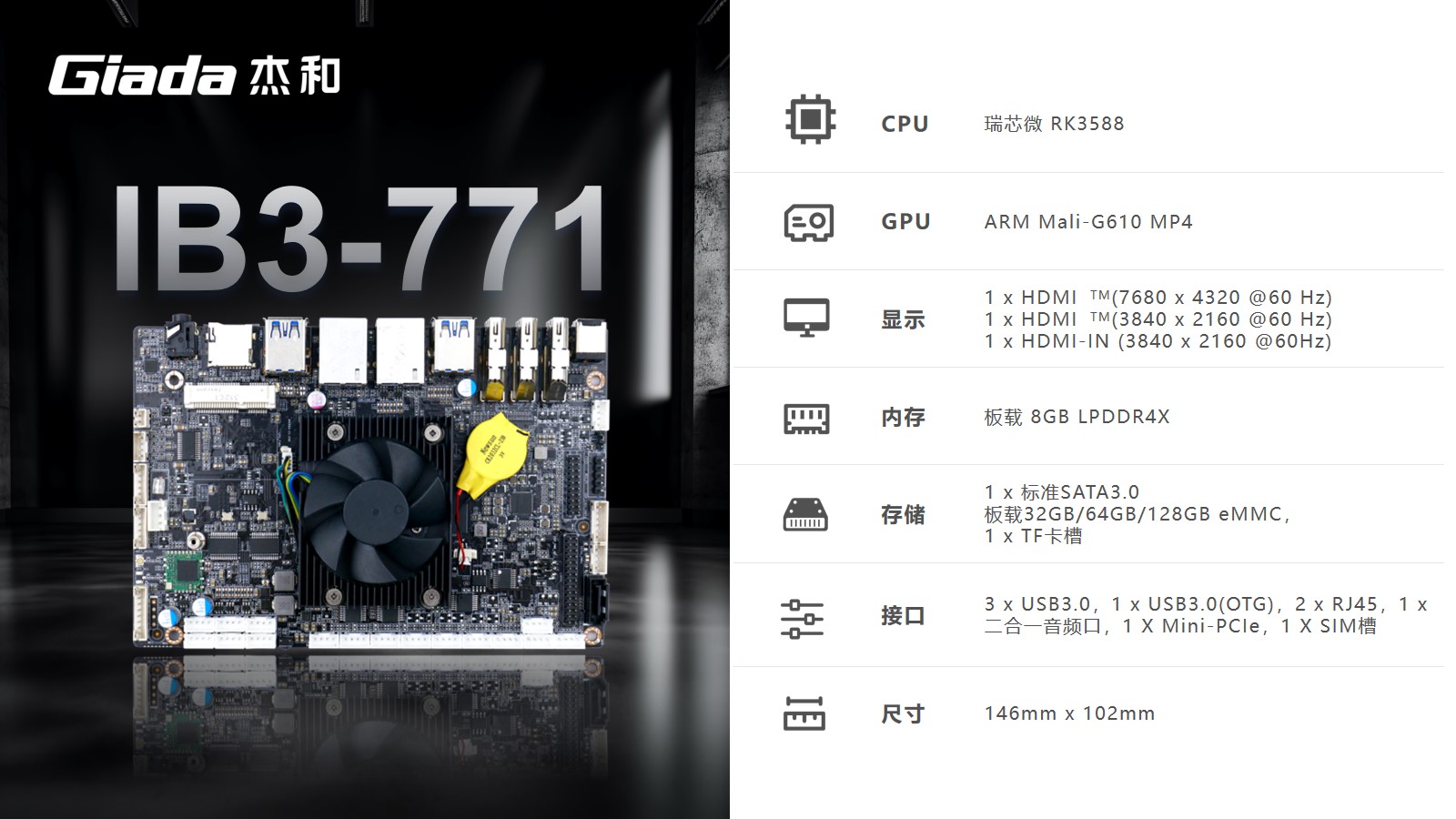 本次星空科技高交会展示的工业计算机主板IB3-771、IB3-761,搭载了Rockship的芯片,可应用于工业自动化、物联网解决方案和汽车系统,已经被多数客户部署在工厂车间以及物联网生态系统的智能设备中。