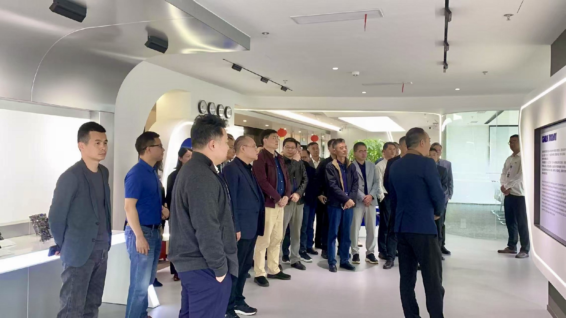 作为东道主,星空科技带领与会嘉宾参观数字化展厅,重点呈现企业历程、AI算力产品以及一系列自主研发成果。展厅内多项专利技术及行业解决方案,直观展现了企业在智能制造、智慧零售等领域的技术沉淀,为后续研讨提供了实践参考。