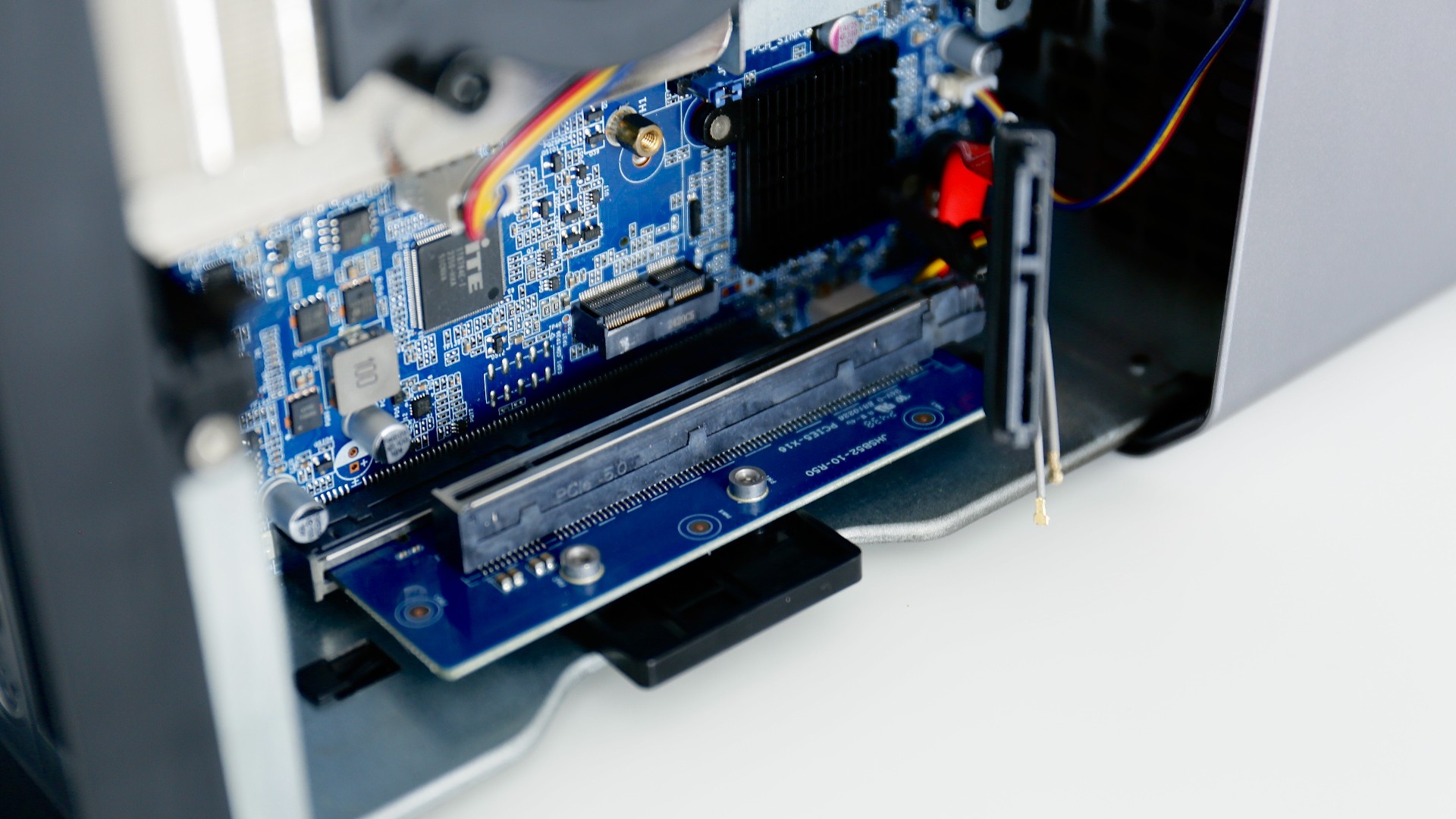 打开WA814内部,星空可以看到PCle5.0 x16 高速扩展口,它的速度高达64GB/s,可以实现独立显卡、多网口、高速 SSD、多 COM 等设备的扩展。