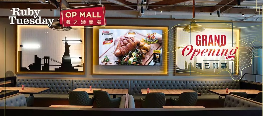 星空科技是Ruby Tuesday连锁餐厅智慧化项目的方案提供商。星空承担了整个餐厅的多媒体信息系统架构的设计以及终端媒体播放器的安装和部署,帮助餐厅实现了6屏拼接、4屏拼接及86寸超大屏显示,使餐厅的商业环境和品牌形象得到了极大的提升。
