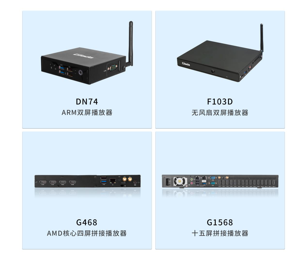 面对需求多样的市场环境,除星空G330六屏拼接播放器外,星空科技相继推出了G468四屏拼接播放器、G968九屏拼接播放器、G1568十五屏拼接播放器等多平台、多规格产品,均能够与星空GDSM商显系统平台完美适配,为商家的实际需要,供应选型完整的家族式产品。