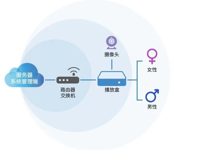 融合人工智能技术,采用专业的人脸识别算法,通过终端接入摄像头获取识别人体画像,并分析判断其年龄、性别等属性,实现自动推送与客户匹配度高的广告内容,针对新老客户、不同会员等级客户区别性播放广告。