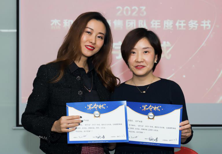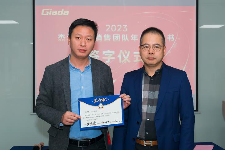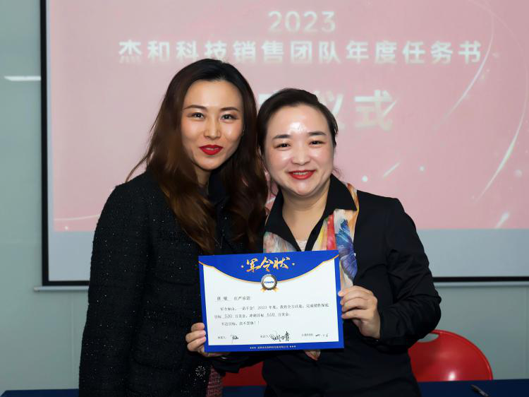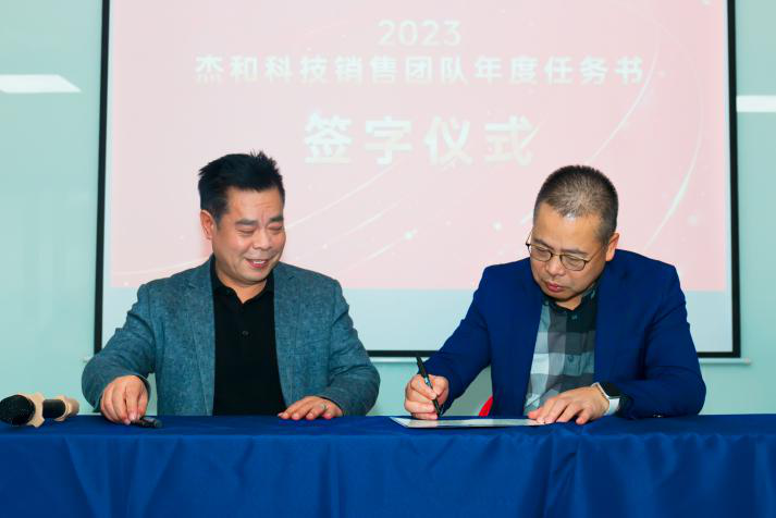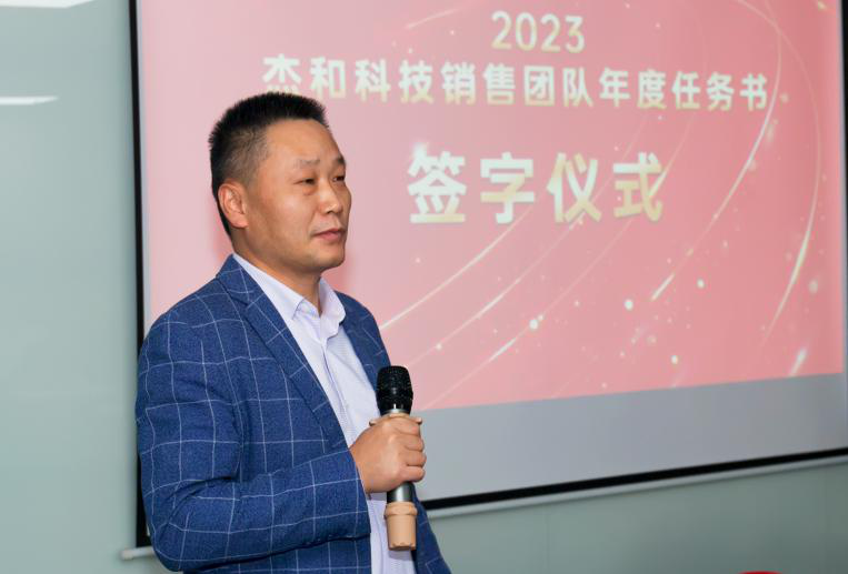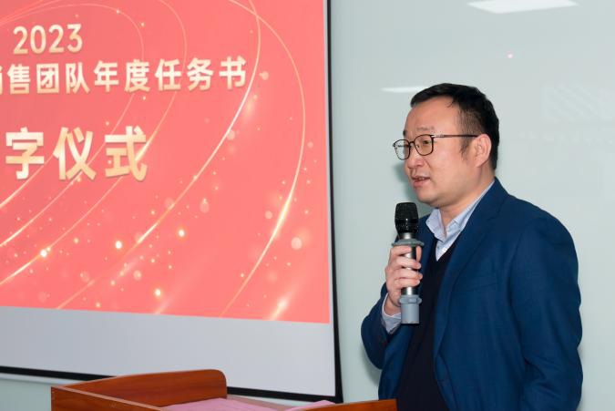 签约仪式中,国际营销中心业务代表刘正文和国内营销中心业务代表李喆发言,两位代表朴实的发言表示,销售人员必须要努力和坚持,要有愚公移山的精神才能成就了2022年的可喜成绩,同时完成2023年度目标必须怀着奋斗者的精神去努力拼搏,2023年星空业务会冲到前线,紧贴市场,紧贴客户,抢夺订单。