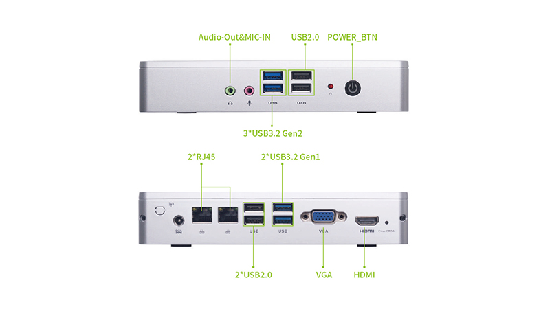 同时,BW611拥有4组USB3.2Gen1接口,4组USB2.0接口;2组音频输入/音频输出接口;2组RJ45网络接口;2组RS232接口;双通道DDR4 SO-DIMM,最大可扩展至32GB;搭载千兆网口,丰富的接口,满足用户更多场景扩展需求。