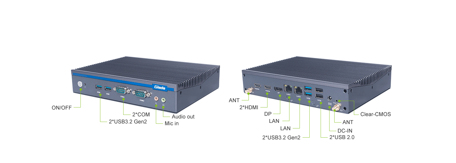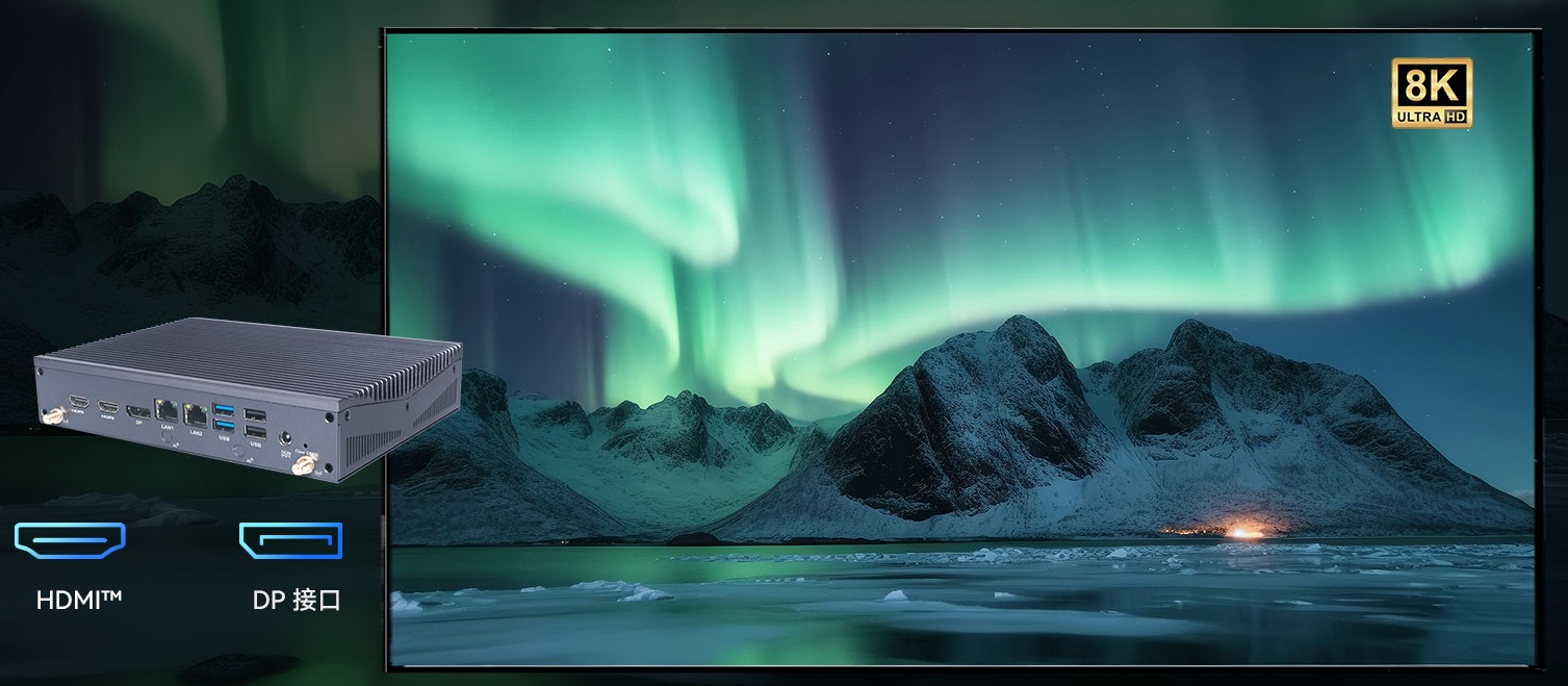 星空科技AE613支持Windows 11 (64bit) /Linux Ubuntu (64bit)系统,双千兆自适应RJ45网口,4 x USB3.1 (10 Gbps),2 x USB2.0,1 x RS232,,1 x RS232/422/485,1 x MIC-IN,1 x AUDIO-OUT,丰富的I/O功能接口,实现更多功能扩展。