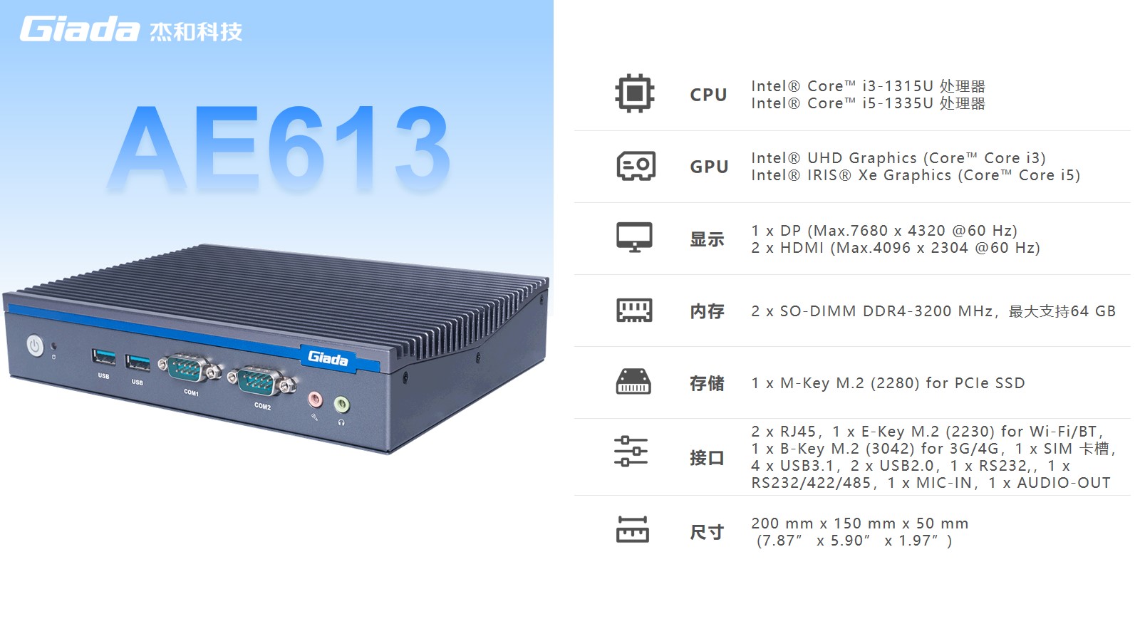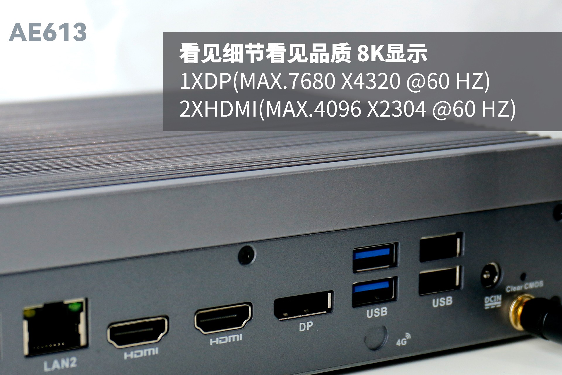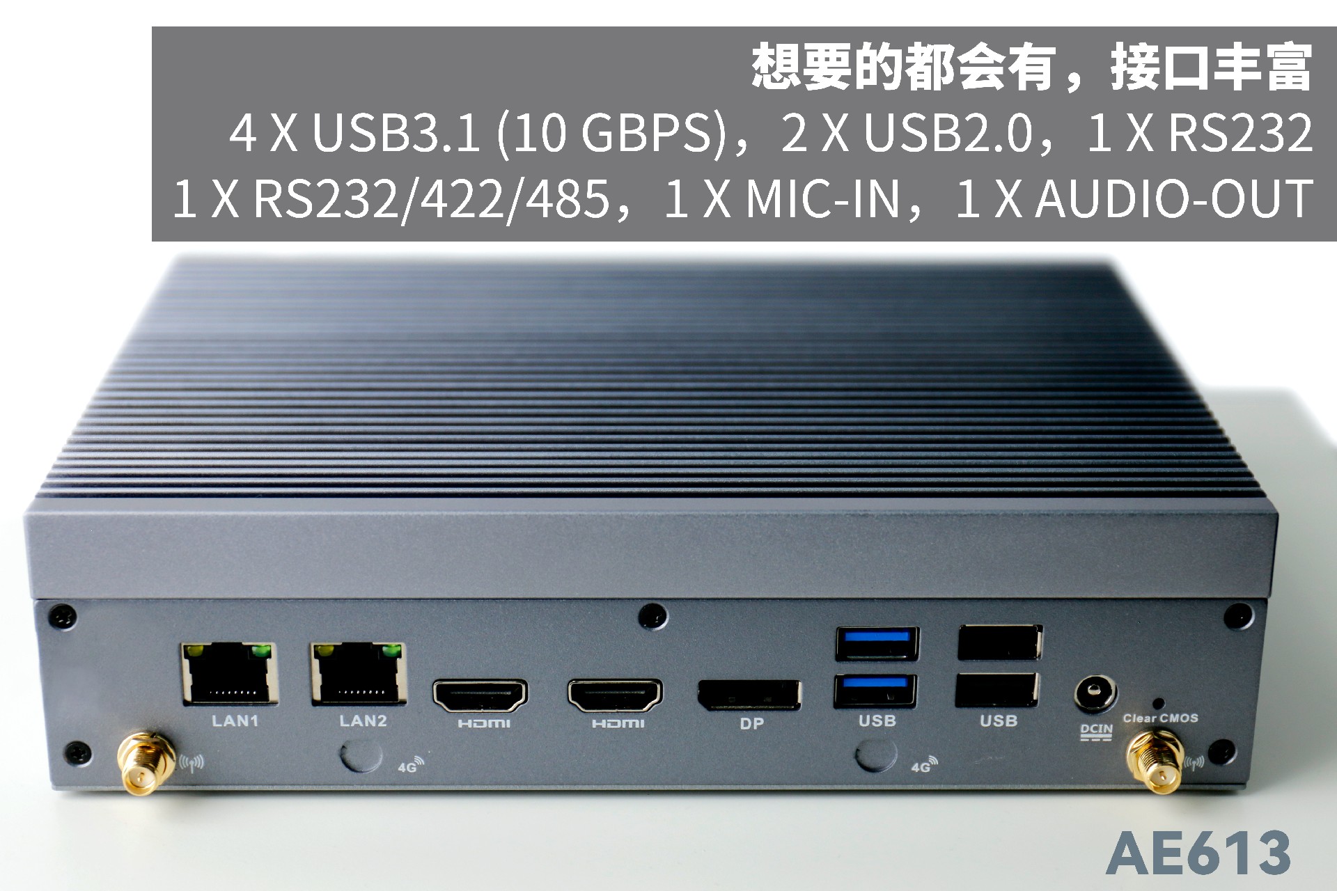 星空AE613支持Windows 11 、Linux Ubuntu系统;拥有丰富接口:双千兆自适应RJ45网口,4 x USB3.1 (10 Gbps),2 x USB2.0,1 x RS232,1 x RS232/422/485,1 x MIC-IN,1 x AUDIO-OUT,帮助用户实现更多功能扩展;并且支持Wi-Fi 6E,可以提供更高的带宽和更少的干扰,支持对无线网络有特定需求场景的应用。